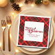 Um clássico padrão vermelho de tartan xadrez atrás da sua mensagem de Feliz Natal com seu nome pessoal em guardanapos de festas de férias. Uma decoração jante festiva e tradicional com linhas vermelhas e douradas.