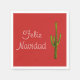 Feliz Navidad napkin, com um cacto verde saguaro em fundo vermelho. Uma maneira divertida de dizer Feliz Natal em espanhol no seu evento de férias. A carta branca pode ser personalizada com a sua própria mensagem!