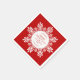 Feliz modelo de guardanapo personalizável de natal. Floco de neve de ornamentado branco sobre fundo personalizável vermelho.