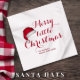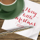 Esta design apresenta um pequeno guardanapo de Natal feliz, com tipografia vermelha, uma reunião familiar, um elegante moderno, um chapéu de Papai Noel, uma festa festiva de Natal, caligrafia, um simples minimalista, divertido, coquetéis.