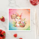 Guardanapos de felz pascoa com coelhinho segurando uma cesta com flores e ovos coloridos