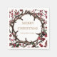 Os guardanapos de festas de Natal com uma ilustração da coroa do galho emparelhados com as frutas vermelhas do inverno e um roteiro elegante no meio criando um design divertido.
