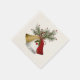 Um guardanapo de papel festivo para as férias com ouro, sino vermelho e branco amarrado com um arco verde, sagrado e vermelho.