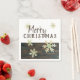 Madeira Rústica Feliz Natal Feriados de Neve Napkin. Um texto feliz de Natal na tipografia moderna, flocos de neve festivos e uma textura rústica de fundo de madeira escura. Moderno e na moda perfeito para as férias de Natal. Perfeito para uma festa de Natal com seus amigos e família.