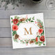 Estas belas guardanapos de Natal apresentam elegantes flores vermelhas em aquarela com bagas de azevinho, pinhas e folhagens em fundo branco com um monograma para personalizar. Encontre itens correspondentes na Coleção de Natal Botânica de Inverno Vermelho de Natal.