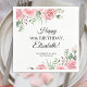 Rosas cor-de-rosa elegantes, decorações femininas com flores para festa de 90 anos - guardanapos de papel personalizados com nome.