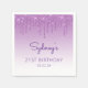 Estes guardanapos de papel chic, femininos, de aniversário de 21 anos, apresentam uma borda cintilante, roxa, com brilho e fundo ombre roxo. Personalize-os com o nome de convidado de honra em um roteiro de escrita manual roxo, com seu aniversário e data abaixo na fonte sans serif.
