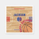 Estes guardanapos personalizados que têm um design de basquete com um nome, idade e evento, todos numa quadra de basquete com uma bola de basquete. Personalizaram esses guardanapos com o evento de aniversário, nome e ano de idade. Os guardanapos super divertidos para usar na festa de aniversário do tema de basquete dos seus filhos. Você pode alterar as cores em personalizar para quaisquer fontes.