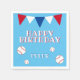 Bonita Festa de Aniversário de criança de Baseball Napkins. O design tem bolas de baseball e bandeiras de bunting em cores vermelhas, brancas e azuis em um fundo azul. Personalize-o com o nome do seu filho. Excelente para um garoto que ama beisebol.