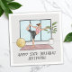 Ioga de Destei, ilustração temática de uma mulher fazendo a Dancer Pose / Natarajasana. A mulher está de pé numa perna enquanto a outra perna sobe e se conecta com uma das mãos. A outra mão da mulher está apontando para a frente enquanto ela se equilibra. A mulher está vestindo um tanque cor-de-rosa no topo e pernas do tipo cinza escura que expõem seus bezerros e dedos. O cabelo castanho da mulher está amarrado em um pão atrás da cabeça com uma gravata de cabelo castanho. A mulher é colocada numa sala moderna com três grandes janelas e uma grande planta de folhas verdes. A mulher está parada num tapete de ioga colorido. Há uma bola redonda de cor amarela e exercícios ao lado da mulher também. Há também uma área de texto personalizável para o tema do evento, como uma festa de aniversário ou uma abertura para um novo estúdio de yoga.