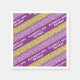 Adicione o nome e a idade do aniversariante ou da menina a esses guardanapos coloridos de festas de papel que dão uma reviravolta moderna em uma faixa Celta. Use "Personalizar esta modelo" para ajustar o texto "28.º Aniversário de Elizabeth!" para seu nome, idade e evento preferidos. O texto branco senta sobre faixas de amarelo, lilás e roxo sobre um fundo roxo escuro.