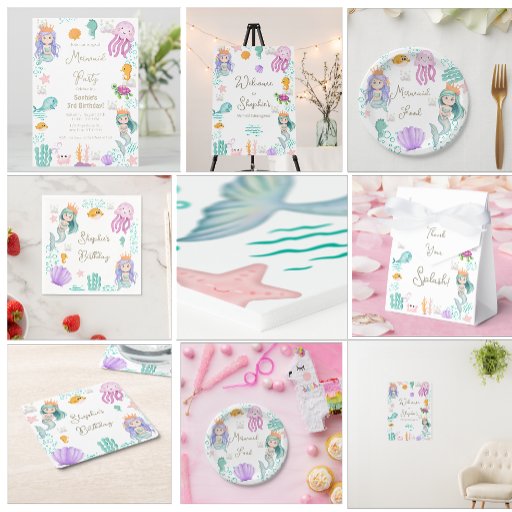 A Festa de aniversário Mágica de Sereia Napkins tem um esguicho debaixo do mar com nossa design mágica de festa de aniversário! Colorida, caprichosa e absolutamente divertida pela sua extravagância de aniversário. Este design é totalmente personalizável e vem com suprimentos de entidades correspondentes em nosso compro.