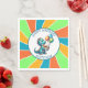 Guardanapos de Festa de aniversário do Adorável Menino Personalizado. O tema do dinossauro bonito em azul, laranja e verde. Dinossauros bonitos de desenho animado segurando balões e bolo de aniversário. Adicione nome e idade na área de personalização.