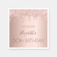 Um guardanapo para uma festa de aniversário feminina e glamourosa 50ª (ou qualquer idade). Um fundo metálico rosa dourado falso com um brilho elegante de rosa dourado, pintura gota-a-gota. O texto: O nome é escrito em ouro rosa escuro com um grande estilo escrito à mão moderno. Modelo de nome, 50 anos e data.