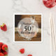Os guardanapos de coquetel de festa de aniversário apresentam um decantador cheio de uísque e óculos numa mesa de madeira rústica com seus detalhes em caracteres quicos. CORRESPONDENTE a itens na nossa coleção.