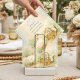 Um charmoso design de chá de bebê no estilo de livro de histórias, apresentando um doce ganso em aquarela ao lado de um ninho cheio de ovos pastéis. Flores delicadas da primavera e folhagens suaves criam uma cena campestre suave, enquanto um laço rosado e um fundo xadrez em sage adicionam um toque aconchegante de cottagecore. O estilo de ilustração vintage e a paleta de pastéis suaves dão a este design um clima de berçário caprichoso, perfeito para uma celebração de bebê divertida e emocionante.