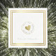 Um quadro quadrado de ouro falso com os nomes da noiva e noiva e data especial, e com um coração gráfico de amor... com texto personalizado 'obrigado para celebrar conosco'