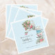 Os guardanapos da festa do chá de chá de panela branco apresentam a ilustração aquática de bule floral empilhado e bules de chá sobre fundo azul claro. Chapas de papel correspondentes disponíveis.