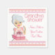 Estamos tendo uma Chá para a vovó para o novo neto. Porque a vovó precisa de coisas legal também e está tão entusiasmada quanto os novos pais. :) Vovó bonita segurando presentes cor-de-rosa com bordas em rosa e pêssego. Convite de Chá de fraldas Correspondente
