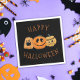 Esses bonitos guardanapos de papel do Dia das Bruxas apresentam um fundo preto com um grupo de abóboras laranja fofinhos. A saudação diz "FELIZ HALLOWEEN", mas é editável. Esta é a design perfeita para uma festa divertida de Halloween!