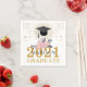 Guardanapos simples de festa de formatura com boné decorado para tipografia floral e tipo ouro num guardanapo branco. Tipografia simples e minimalista e formando boné com raios de ouro.
