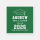 Os guardanapos de festa de formatura modernos apresentam um boné de formando com design de tipografia branca simples e moderna que pode ser personalizado com o nome do formando e a escola. O fundo verde pode ser personalizado para corresponder a qualquer cor do tema da escola ou da festa.