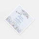 Os bonitos guardanapos de graduação de flor silvestre a aquarela apresentam flores pintadas à mão em tons macios de azul empoeirado e lavanda com folhas botânicas verdes. Personalize-o com o ano de graduação, o nome do formando e a escola de onde eles se formaram. Você também pode incluir o grau que eles receberam. O fundo é azul-céu.