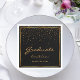 Uma celebração moderna e moderna da graduação. Um fundo preto chic com confete de ouro. Com uma fina falso estrutura de ouro. O texto: Formando é escrito com um script de estilo com letras grandes. Modelo de nome e ano.