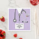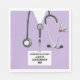 Os guardanapos de festa de formatura com esfregões de hospital lavanda, um estetoscópio e um canivete suíço. Editar texto para adicionar o nome do médico.