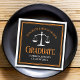 Este moderno guardanapo de papel de festa de formatura da escola de direito preto e laranja apresenta tipografia clássica para uma classe de formando de 2024. Personalize com o seu ano de graduação sob as escalas brancas de justiça para este excelente de advogado personalizado ou presente de advogado de parabéns.