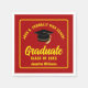 Este moderno guardanapo de papel festa de formatura, vermelho e amarelo, apresenta a tipografia clássica do seu segundo grau ou nome da faculdade para a classe de 2025. Personalize com seu ano de graduação com o script de chic manuscrito e o boné de formando preto para decoração personalizada de formando de excelente.