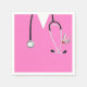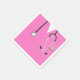Formação em Medicina Criativa ou guardanapos de festa de aniversário Médica com esfregões de hospital cor-de-rosa e faca engraçada do exército suíço no bolso.