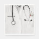 Apreciação médica, aniversário ou festa de formatura médica guardanapos com casaco de laboratório hospitalar com uma faca suíça no bolso. Para personalizar editar texto para adicionar nome.