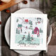 Este bonitinho guardanapo de Natal apresenta uma cidade/vila de Natal com pessoas, casas, uma igreja, árvores, um carro com uma árvore de natal no topo, e uma pista de patinação. Personalize-o para as suas necessidades. Você pode encontrar produtos correspondentes na minha loja.