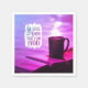 O guardanapo de escrituras inspiracional retrata uma cena pacífica de uma Bíblia aberta ao lado de uma xícara de bebida quente cozida, talvez café ou chá, em uma grade que ignora a água. Apresenta a Bíblia Verse Psalm 46:10, "Fique quieto e saiba que sou Deus."