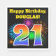 Este design de guardanapo de papel vibrante e divertido apresenta um padrão de fogos de artifício comemorativos coloridos inspirados, junto com o número "21" tendo um padrão multicolorido de inclinação, num fundo preto colorido. Ele também apresenta um nome personalizável e uma mensagem de evento. Os guardanapos de papel como este poderiam talvez ser usados numa festa a ser realizada para celebrar o vigésimo primeiro aniversário de alguém. [~Z0000326]