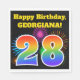 Este design de guardanapo de papel vibrante e divertido apresenta um padrão colorido inspirado em fogos de artifício celebratórios, juntamente com o número "28", que inclui um padrão de gradiente inspirado no arco-íris multicolor, num fundo preto colorido. Ele também apresenta um nome personalizado e uma mensagem de evento. Os guardanapos de papel como este podem ser usados numa festa de aniversário a ser realizada para celebrar o vigésimo oitavo aniversário de alguém. [~Z0000326]