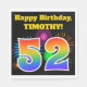 Este design de guardanapo de papel vibrante e divertido apresenta um padrão colorido inspirado em fogos de artifício celebratórios, juntamente com o número "52", tendo um padrão de gradiente inspirado no arco-íris multicolor, sobre um fundo de cor preta. Ele também apresenta um nome personalizado e uma mensagem de evento. Os guardanapos de papel como este podem ser usados numa festa a ser realizada para celebrar o cinquenta segundo aniversário de alguém. [~Z0000326]