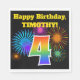 Este design de guardanapo de papel vibrante e divertido apresenta um padrão de fogos de artifício comemorativos coloridos inspirados, juntamente com o número "4", que inclui um padrão de gradiente inspirado no arco-íris multicolor, num fundo de cor preta. Ele também apresenta um nome personalizável e uma mensagem de evento. Os guardanapos de papel como este podem ser usados numa festa a ser realizada para celebrar o quarto aniversário de alguém. [~Z0000326]