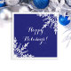 Os festivos flocos de neve brancos de inverno no Livro Azul Feliz sobre Feriados Napkins adicionarão um toque elegante à sua Casa Aberta ou festa de Natal. Estes guardanapos de papel descartáveis de inverno personalizados e elegantes apresentam flocos de neve brancos adorando os cantos com um fundo azul.