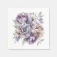 Party paper napkins are shown in the white cocktail size with a watercolor print of a pretty smokey amethyst peony floral mix.