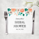 Guardanapos florais de pêssego personalizados para um chá de panela elegante. Condecorações de festas com flores em verde e cor de pêssego. Visite nossa coleção para ver mais itens coordenadores que correspondam a este design para seu evento especial.