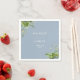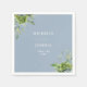 Este guardanapo de casamento floral botânico verde elegante pode ser personalizado com suas informações em tipografia elegante em um fundo azul poeirento. Projetado por Thisisnotme©