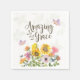 O surpreendente guardanapo de Grace retrata uma bela design de jardim floral de aquarela incluindo girassóis amarelos, flores de prado cor-de-rosa e laranja e borboletas. Ela mostra a amada mensagem cristã da maravilhosa Graça de Deus.