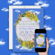 Flores amarelas cheias são uma obra-prima floral contra o céu primavera azul com borboletas para um design de coleção de casamento para personalizar.