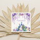 Pavão e flores roxas aquáticas cor d'água; guardanapos personalizados de mesa de casamento indiana. Dois belos pavões, flores roxas de jasmim, wisteria, flores penduradas e modelo de festas de granjas