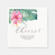 Estes guardanapos personalizados apresentam uma flor de hibisco rosa-d'água com folhas de palma de monstera tropical. A palavra "Saúde" é definida na tipografia da moda. Use os campos modelo para adicionar seu texto personalizado à mrs futura. Uma elegante e tropical escolha para casamentos de destino, jantas de ensaio e chás de panela com tema floral. Para ver mais guardanapos personalizados visite www.zazzle.com/dotellabelle Arte a aquarela exclusiva e design por Victoria Grigaliunas do Do Tell A Belle.