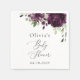 Adicione um toque pessoal à celebração do seu chá de fraldas com estes itens de na moda e festa memoráveis! Design apresenta flores roxas de cor d'água plum e verde em fundo branco.