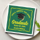 Este moderno guardanapo de papel festa de formatura verde e amarelo apresenta a tipografia clássica do seu segundo grau ou nome da faculdade para a classe de 2025. Personalize com seu ano de graduação com o script de chic manuscrito e o boné de formando preto para decoração personalizada de formando de excelente.