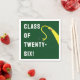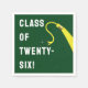 Guardanapos personalizados para festa de formatura criativos com o clássico boné de borla verde e dourado para a turma de formandos de '26. Para personalizar, edite o texto para adicionar o nome ou personalizar de outra forma.